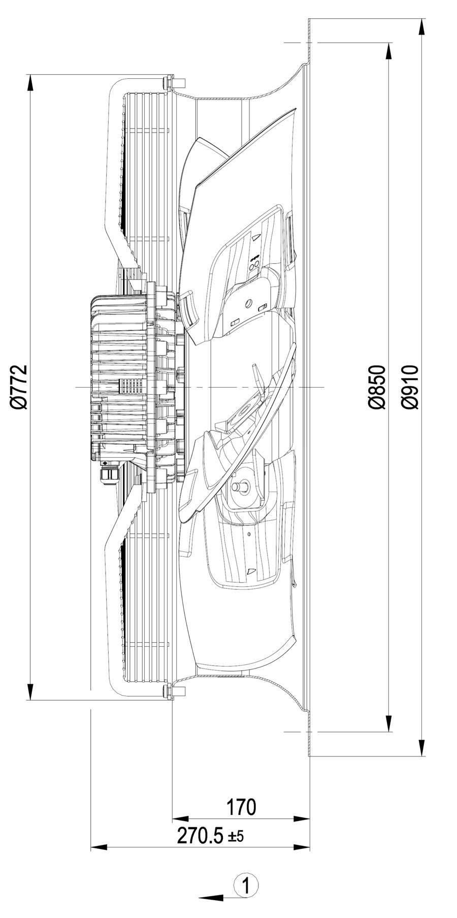 1. Direction of air flow "V"