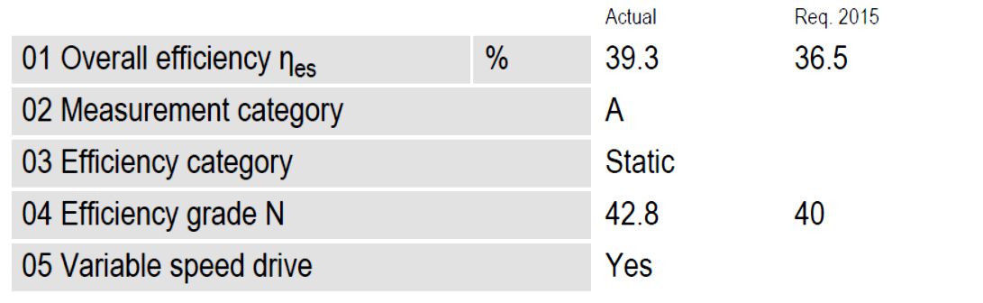 Data obtained at optimum efficiency level.The ErP data is determined using a motor-impeller combination in a standardized measurement setup.